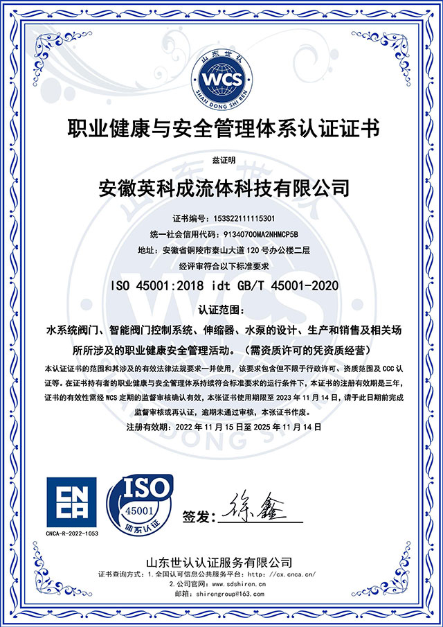 職業(yè)健康安全管理體系認(rèn)證證書