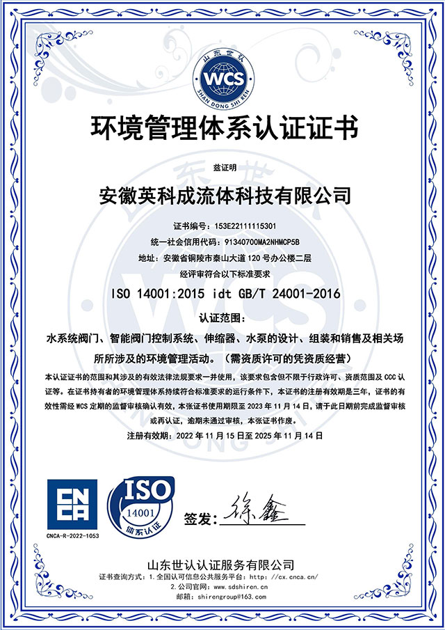 環境管理體系認證證書